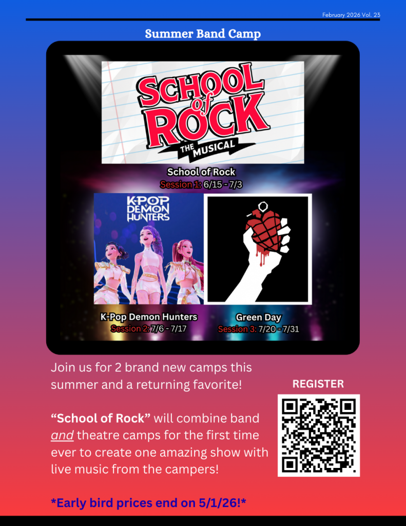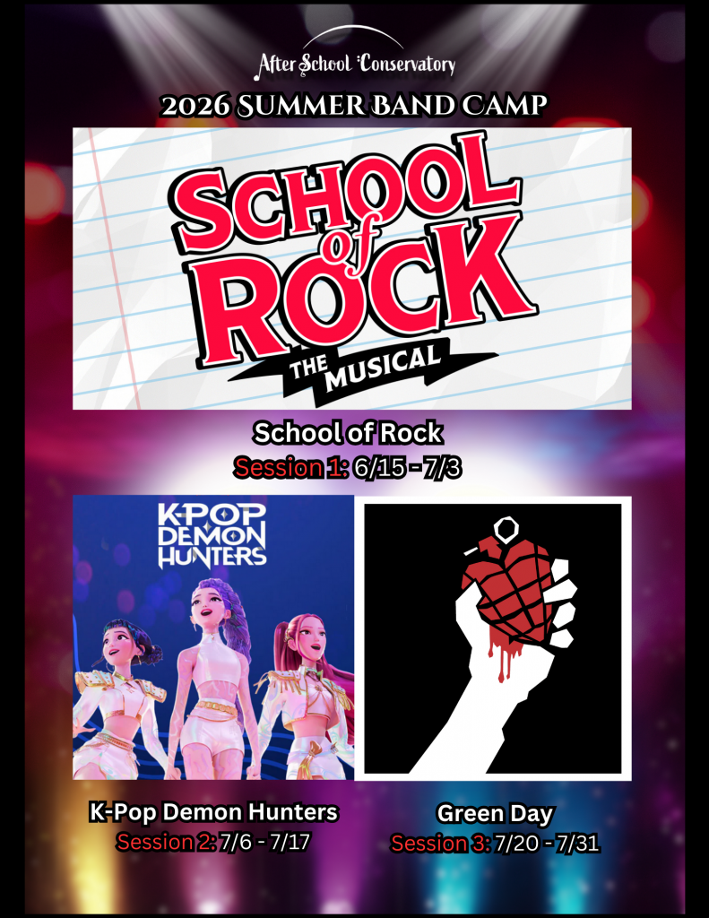 Band/Musical Theatre Program: Our school offers a band program and Theatre program. We strongly believe that students can complete their music learning experience by playing music with others in a group setting. On top of weekly private instrumental lessons, students can have one weekly group rehearsal where they learn classic rock and pop songs that have been arranged for them. We provide a band coach for each rehearsal. Our instructors will help students to learn their part during the weekly private lessons.