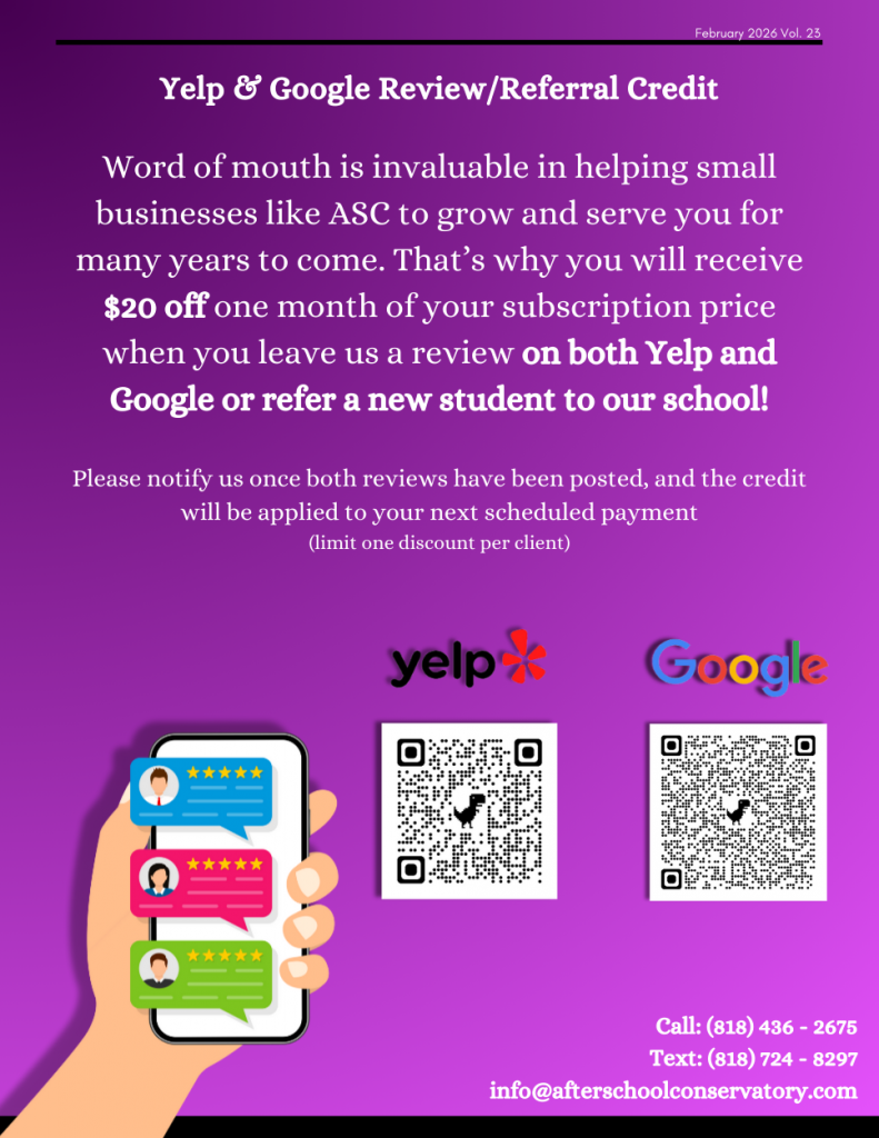 After School Conservatory is located on Ventura Blvd. near the border of Woodland Hills and Calabasas. We are conveniently located near Woodlake Elementary, Woodland Hills Elementary, Calabash Charter Academy, Hale Charter Academy, El Camino High School, and many more.